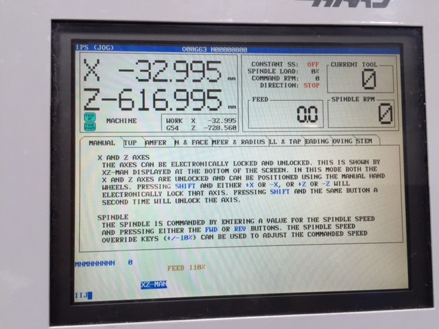 | | | | | Year: | | 2005 | | Make: | | Haas | | Model: | | TL-2 | | Machine Weight: | | 2087kg | | Traverses XYZ: | | 203mm x 1219mm | | Spindle Speed: | | 2,000rpm | | Spindle Motor Power: | | 8.9kW | | Rapid Feedrates: | | 1.9 / 3.8 m/min | | Chuck Size: | | 254mm | | Spindle Bore: | | 76.2mm | | Swing Over Carriage: | | 282mm | | Spindle Nose: | | A2-6" | | Control: | | Haas | | Distance Between Centres: | | 1219mm | | Maximum Cutting diameter: | | 406mm | | Description: | | Tailstock, 3 Jaw Chuck |