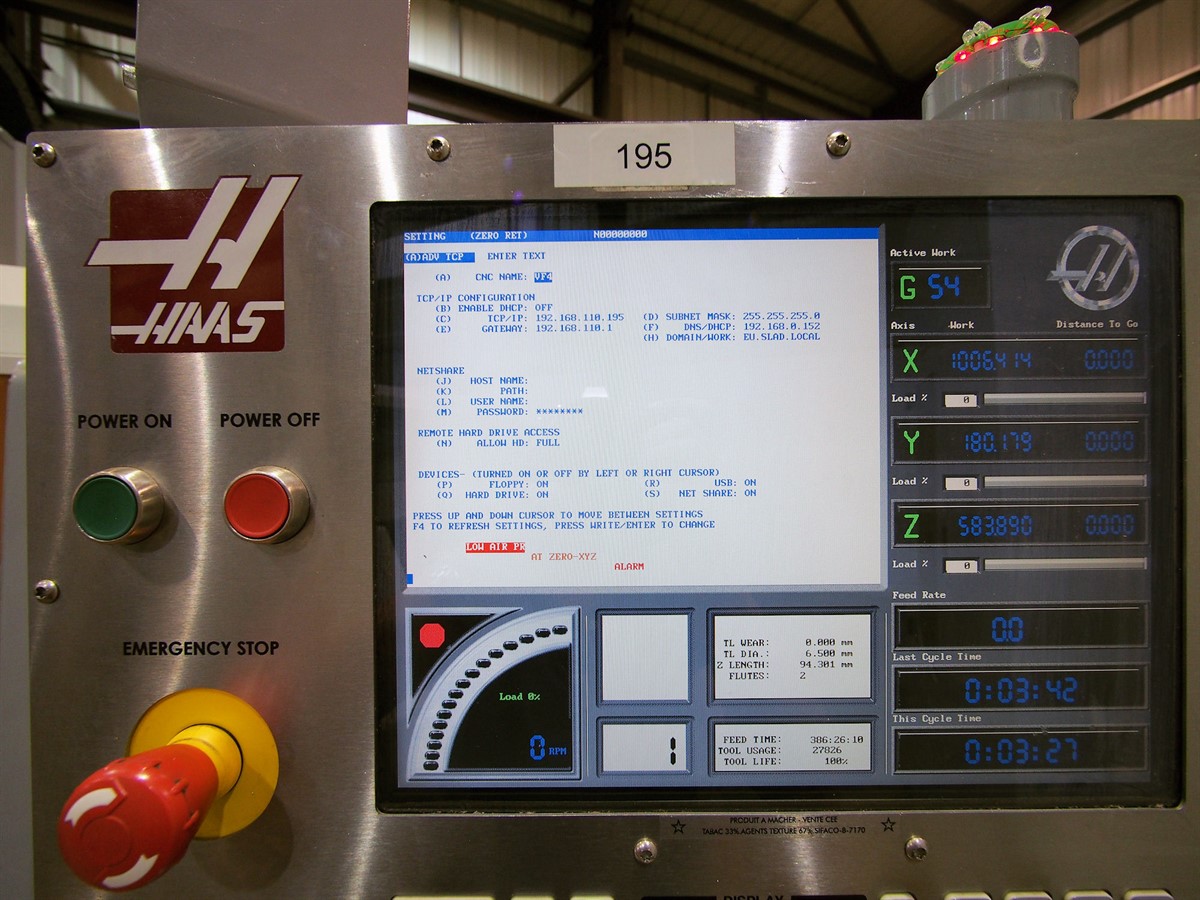 Tool setter, Coolant, Interlocked guards, Low Volt Light, Programmable Coolant Nozzle, Manuals, 4th Axis Interface, Chip Auger, USB Port, Swarf Auger, Ethernet Port Ethenet Port, Ethernet Port